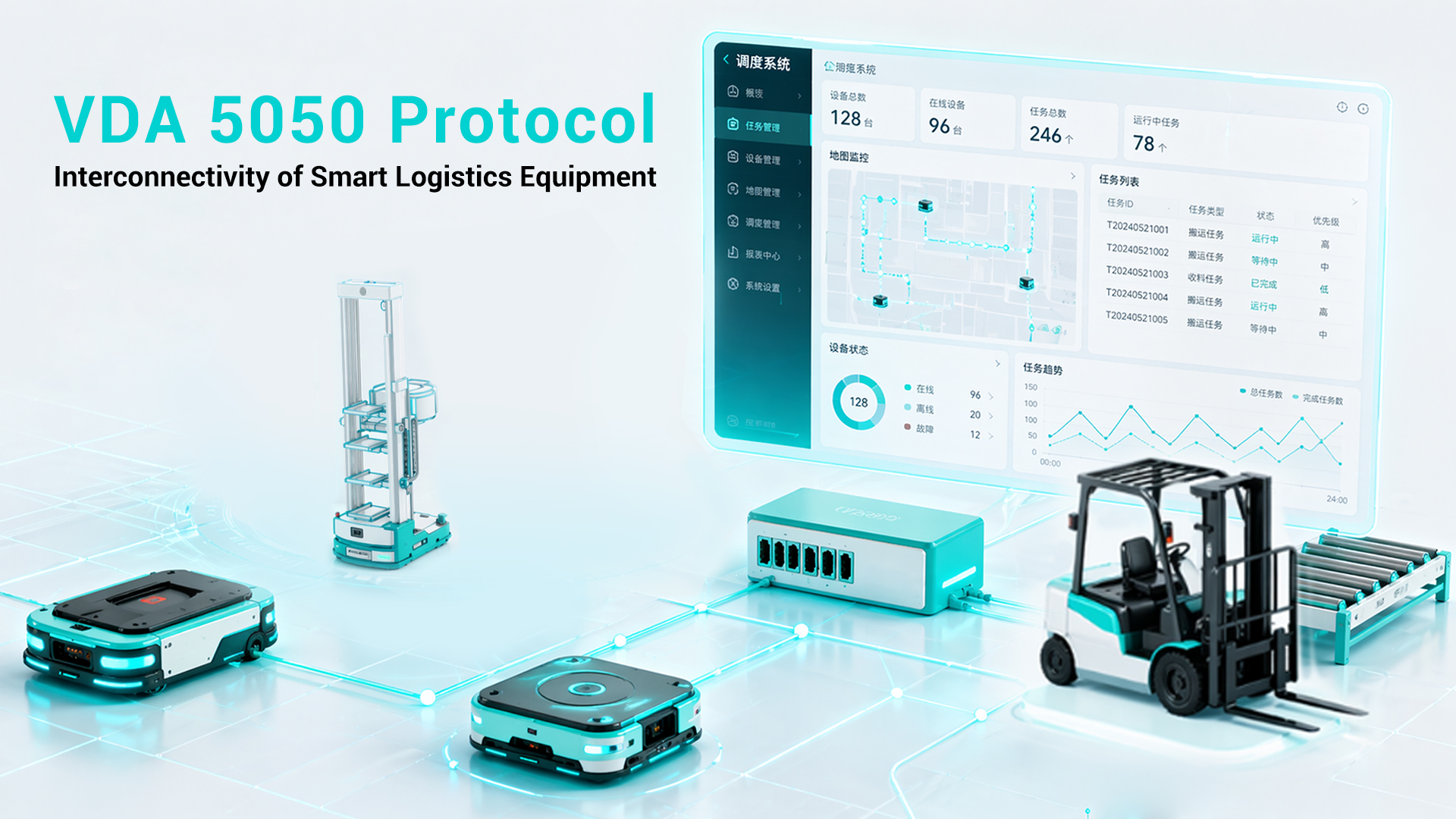 VDA5050, entwickelt vom Deutschen Automobilindustrie-Verband (VDA) in Zusammenarbeit mit dem VDMA, ist ein Kommunikationsschnittstellenstandard für AGVs und AMRs. Sein Kernziel ist es, eine einheitliche Kommunikationssprache bereitzustellen und die Herausforderungen der geräteübergreifenden Kompatibilität zu lösen.